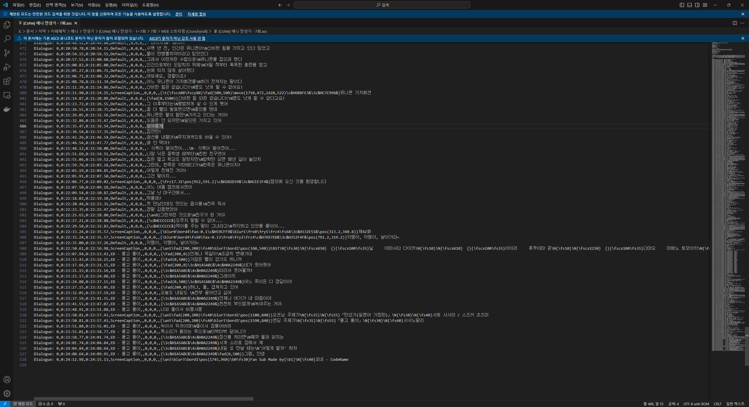 다만, 만성가는 대사가 많기도 하고 7화부터는 ASS로 제작해서