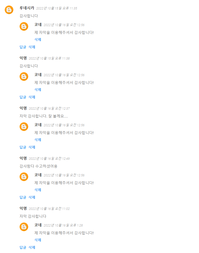 댓글 달아주신 분들께 감사드립니다!