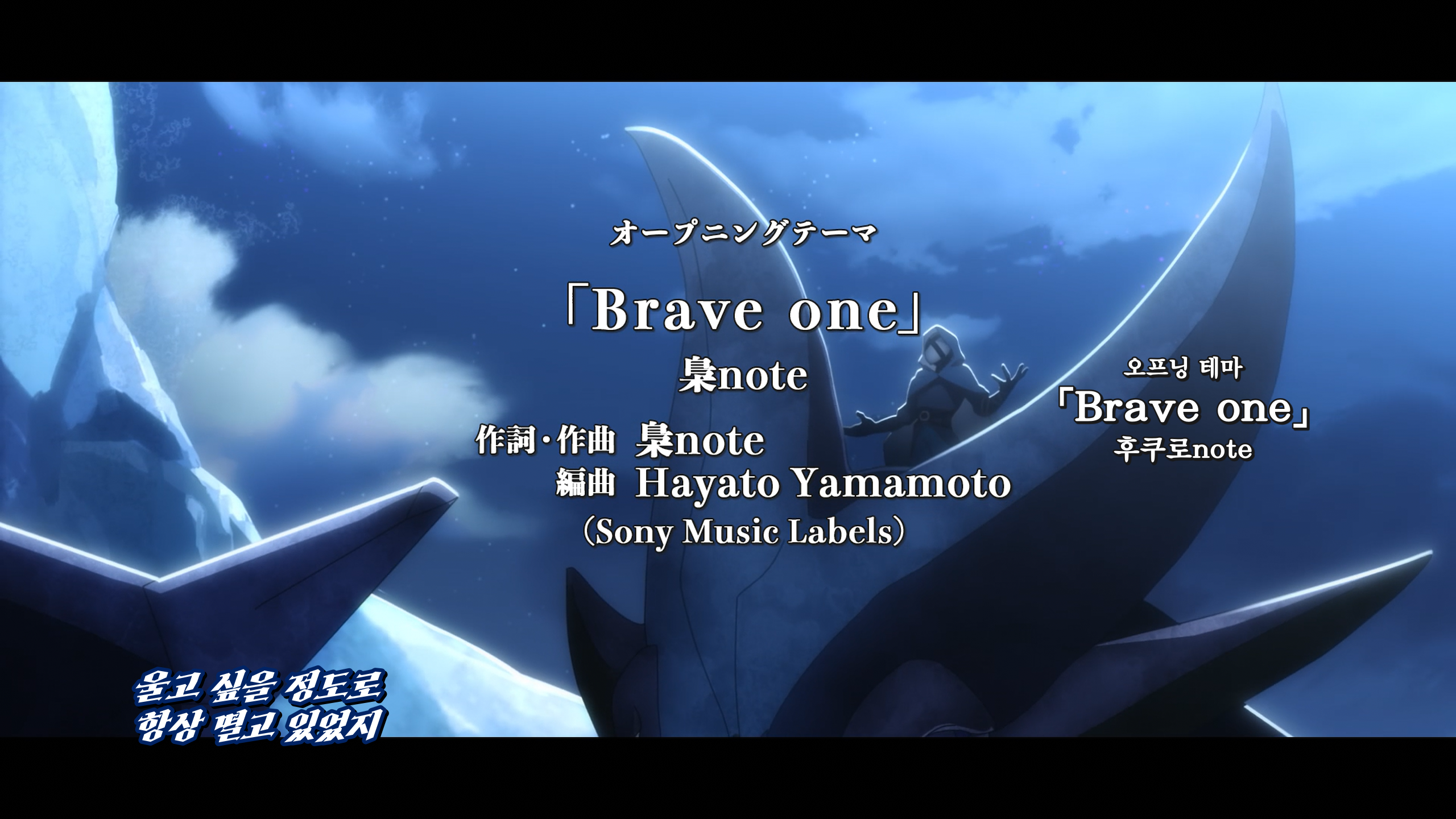 오프닝은 귀카피로 넣었지만 엔딩은 잘 안 들려서 추후 공식가사 뜨면 추가하겠습니다.