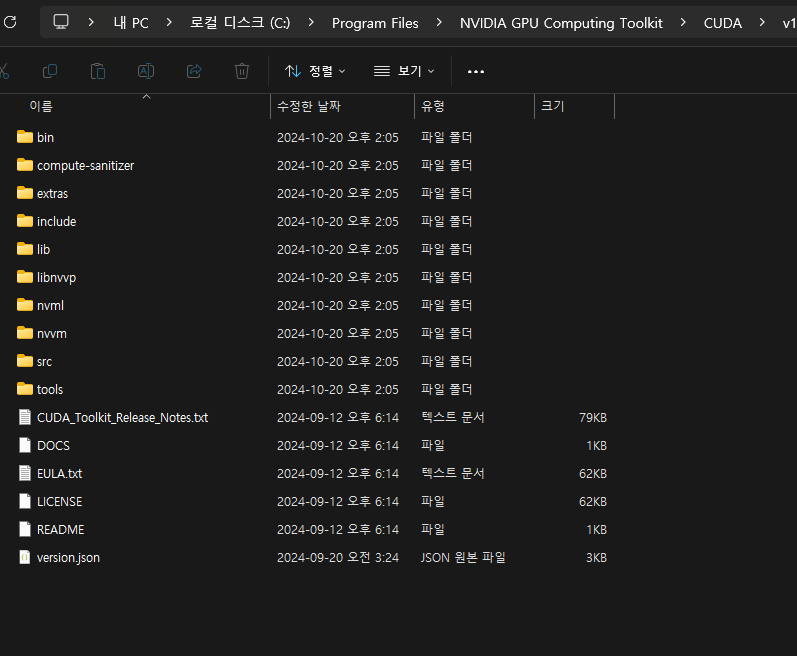 이제 환경변수로 들어가 CUDA 경로가 정상적으로 적용되었는지 확인합니다.