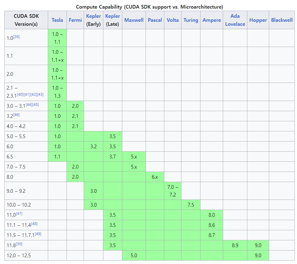 먼저 본인이 사용하는 그래픽카드의 SDK 지원 버전을 확인합니다.